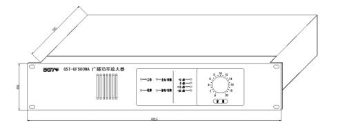 以 GST-GF500WA 型廣播功率放大器為例進(jìn)行說明,其外形及結(jié)構(gòu)示意圖如圖 9-3。