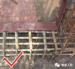 a.人防門下門檻梁未緊貼門框配筋(錯誤做法):
