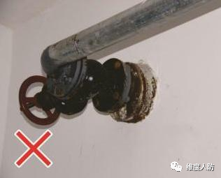 b.防護閥門設置離墻太遠(錯誤做法):