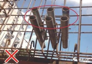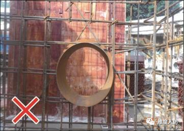 a. 由于前期未做好預埋,后期消防管線安裝時出現亂鉆孔現象(錯誤做法):