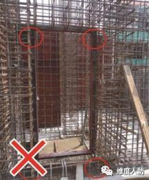 a.門框下門檻支撐在結構主筋上門框支撐未形成三角形支撐(錯誤做法):