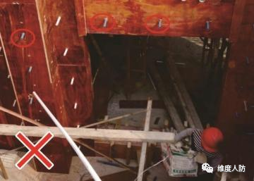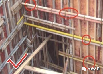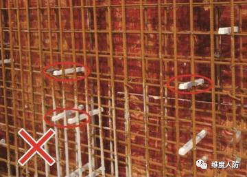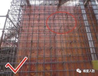 《人民防空工程質量驗收與評價標準》(RFJ01-2015) 第 6.4.2 條:外墻、臨空墻、門框墻、防護密閉隔墻和密閉隔墻的模板安裝,其固定模板的對拉螺栓上嚴禁采用套管、混凝土預制件等。