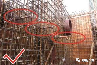 b. 按要求在孔洞口加設加強鋼筋(正確做法):