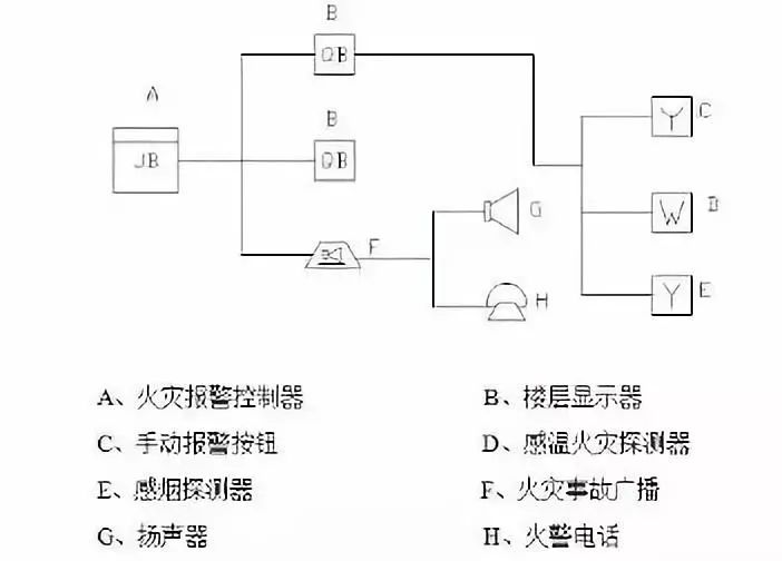 火災自動報警系統的基本結構如圖: