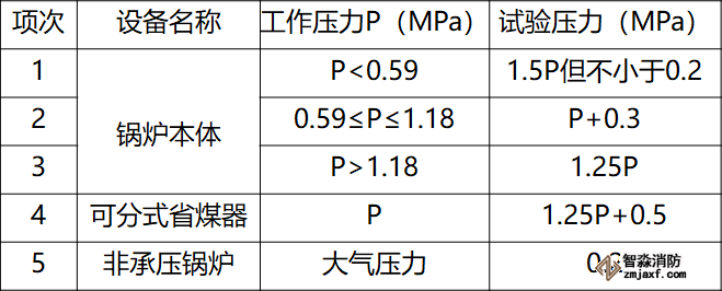 13.2.6 鍋爐的汽、水系統安裝完畢后,必須進行水壓試驗。水壓試驗的壓力應符合下表的規定。