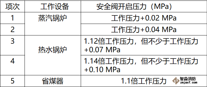 13.4.1 鍋爐和省煤器安全閥的定壓和調整應符合下表的規定。鍋爐上裝有兩個安全閥時,其中的一個按表中較高值定壓,另一個按較低值定壓。裝有一個安全閥時,應按較低值定壓。