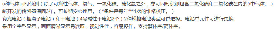 氣體警報顯示: 警報燈閃爍/Buzzer連續變調鳴動/氣體濃度顯示閃爍/震動