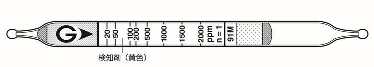 檢測線:0.03ppm(抽氣5次)顏色變化:黃褐色→粉色