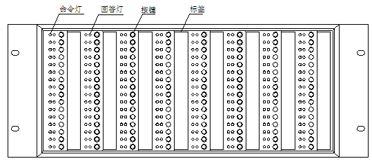 GST-LD-SD128智能手動消防啟動盤的外觀示意圖如圖2-11。每塊手動盤的每一單元均有一個按鍵、兩只指示燈和一個標簽。其中,按鍵為啟/停控制鍵,如按下某一單元的控制鍵,則該單元的命令燈亮(紅色),并有控制命令發出,如被控設備響應,則回答燈亮(紅色)。用戶可將各按鍵所對應的設備名稱書寫在設備標簽上面,然后與膜片一同固定在手動盤上。