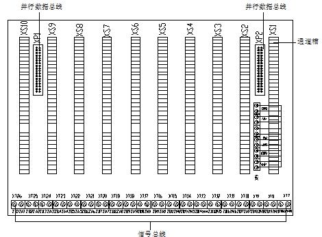 母板安裝在主機控制部分的底部,通過端子與DC-DC變換模塊相連。母板上有十個通道插槽,可分別插主板、回路板、通訊板。本控制器最多可擴展為四個母板箱。