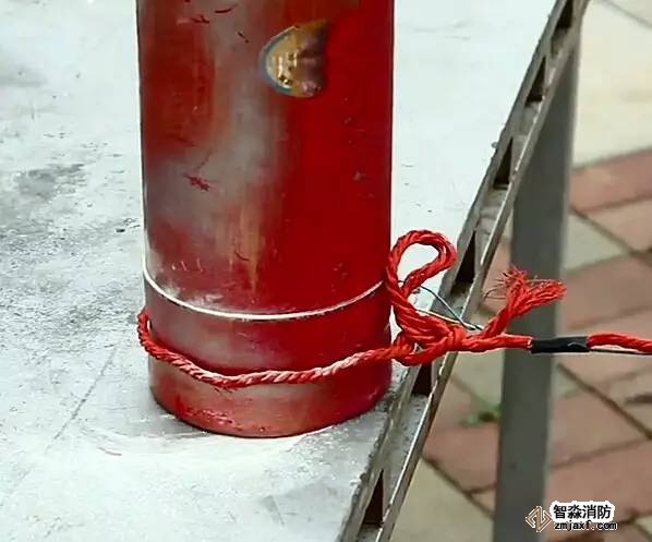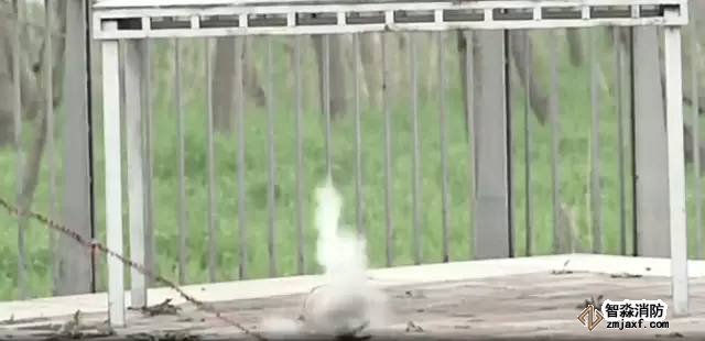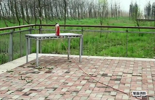我們用一根繩子拴住一個過期的滅火器,在安全距離外扯動繩子,讓滅火器跌落在地,看看會發(fā)生什么。