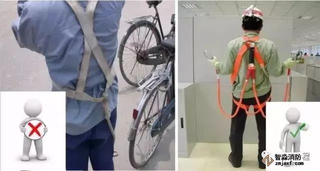 作業(yè)時要穿緊工作服、防滑鞋、戴好安全帽、系好安全帶。