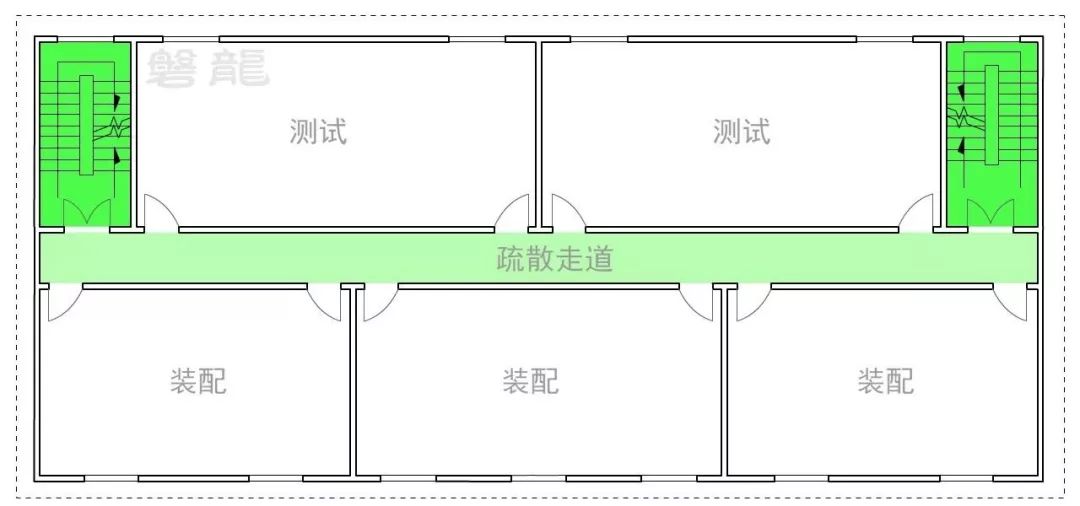 1、在圖示5的廠房建筑中,同樣應(yīng)采用“房間”→“疏散走道”→“安全出口”的基本設(shè)置原則,確保風(fēng)險(xiǎn)逐級(jí)降低,廠房倉(cāng)庫(kù)疏散走道兩側(cè)的隔墻,其燃燒性能和耐火等級(jí),應(yīng)符合《建筑設(shè)計(jì)防火規(guī)范》3.2.1要求。