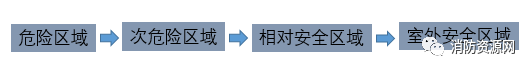 1、室內(nèi)房間屬于危險(xiǎn)區(qū)域,一旦發(fā)生火災(zāi),人員應(yīng)迅速疏散至相對(duì)安全的次危險(xiǎn)區(qū)域(疏散走道),通過(guò)疏散走道疏散至安全出口(圖示1)。