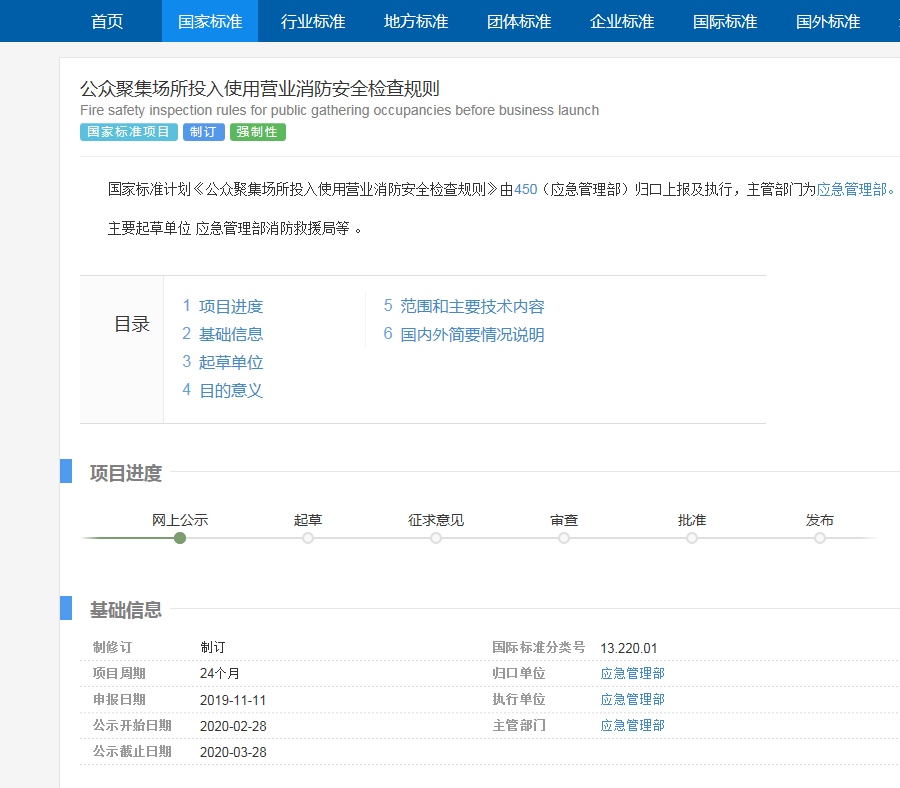 本頁關鍵詞:《公眾聚集場所投入使用營業消防安全檢查規則》擬立項編制