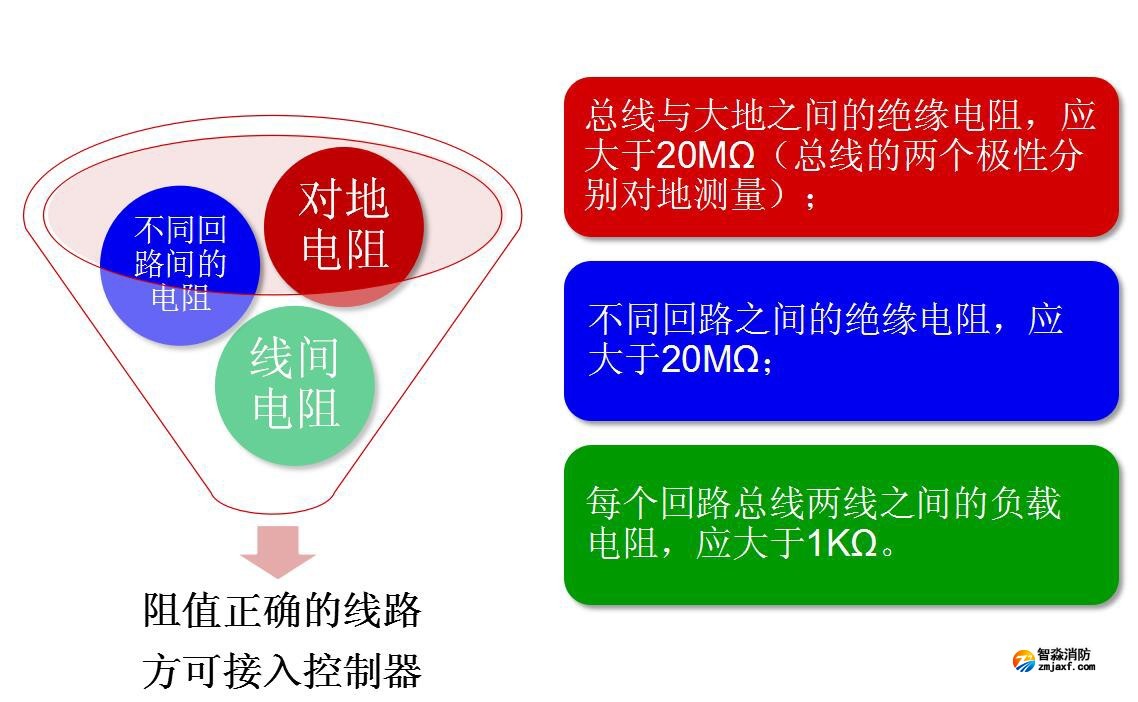 火災(zāi)自動報警系統(tǒng)導(dǎo)線敷設(shè)后,在安裝現(xiàn)場設(shè)備之前,應(yīng)對每回路的導(dǎo)線用500V的兆歐表(搖表)測量絕緣電阻,其對地絕緣電阻值不應(yīng)