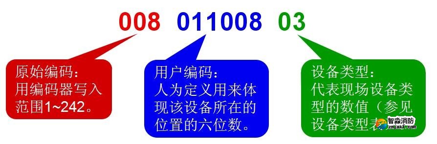 第三位對應(yīng)設(shè)備所在的區(qū)號,取值范圍為0-9。如:樓棟號、單元號、防火分區(qū)等。第四、五、六位通常對應(yīng)總線制設(shè)備的原始編碼,或者其它