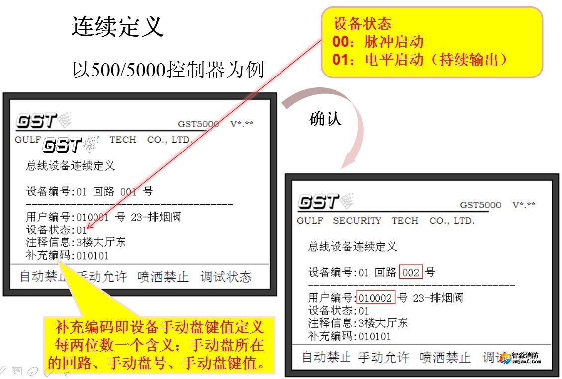 控制器所接的可編址外部設(shè)備均需進(jìn)行編碼設(shè)定,每個設(shè)備對應(yīng)一個原始編碼(一次碼,如下圖紅色數(shù)字)和一個用戶編碼(二次碼,如下