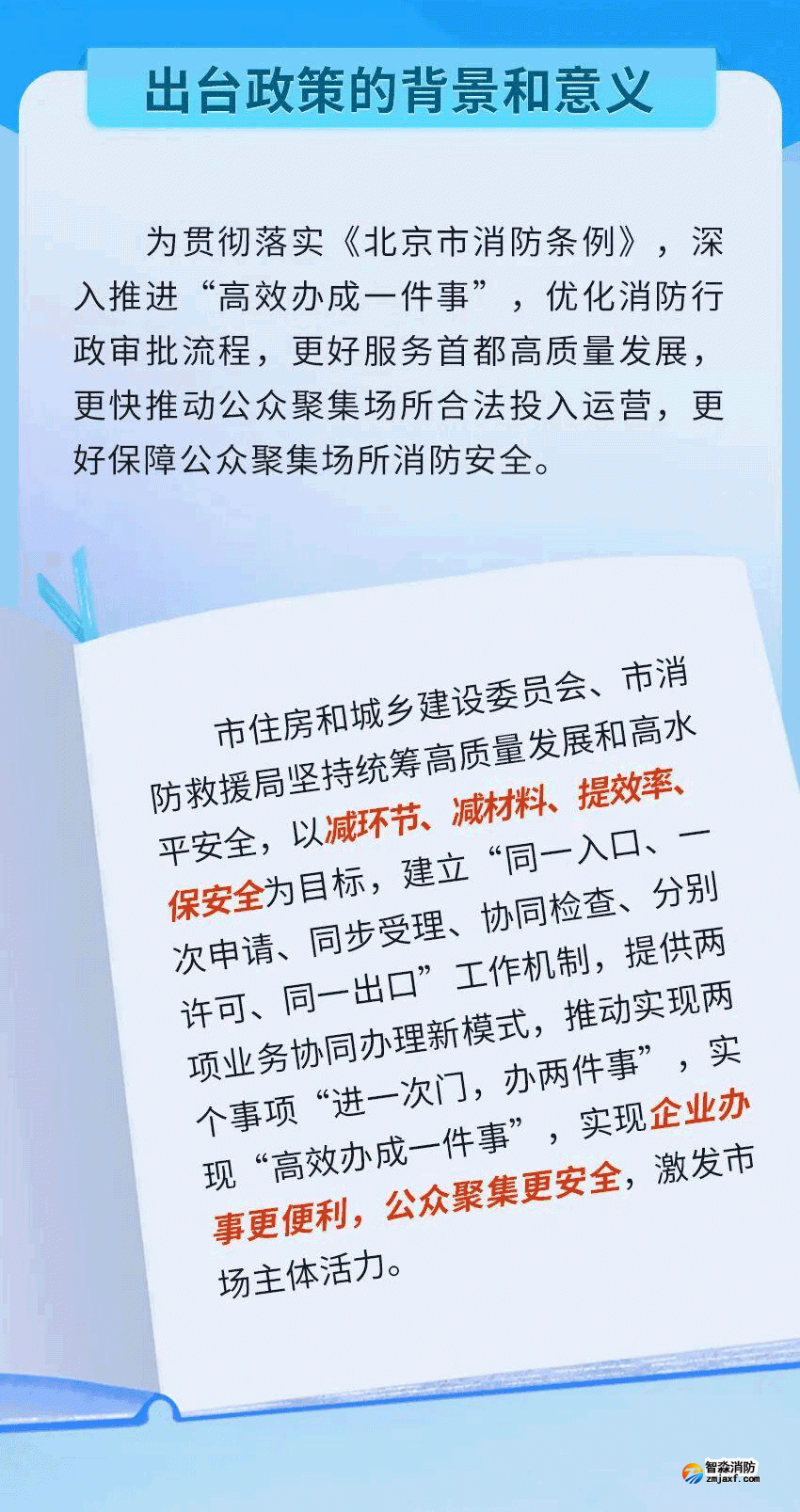 本頁關鍵詞:一圖讀懂《北京市建設工程消防驗收和公眾聚集場所投入使用、營業前消防安全檢查協同辦理工作指引(試行)》