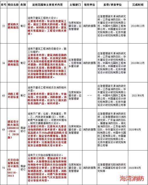 重磅!2019年數十項消防相關規范將被修訂!