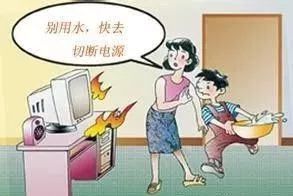 電器著火時,不能用水來滅火,以免因水流導電發生觸電事故。