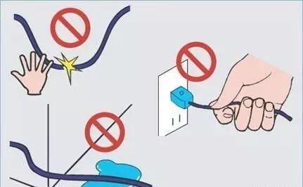 使用電器時,應注意電源線不要被重物壓住,否則可能會造成電線折斷或絕緣破損,使電線短路或漏電。插拔電源插頭時要著力于插頭,不要拽拉電線。不能充電的電池、干電池不能拿來充電,否則有爆炸的危險。