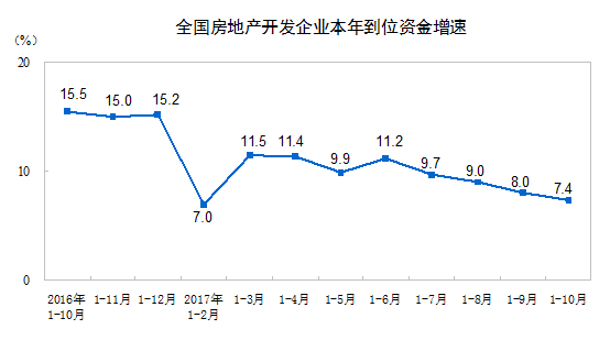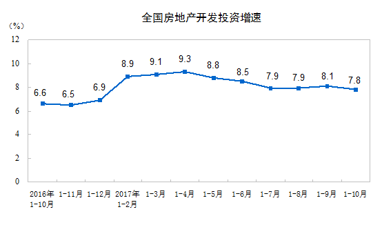 2017年1-10月份全國房地產開發投資和銷售情況;