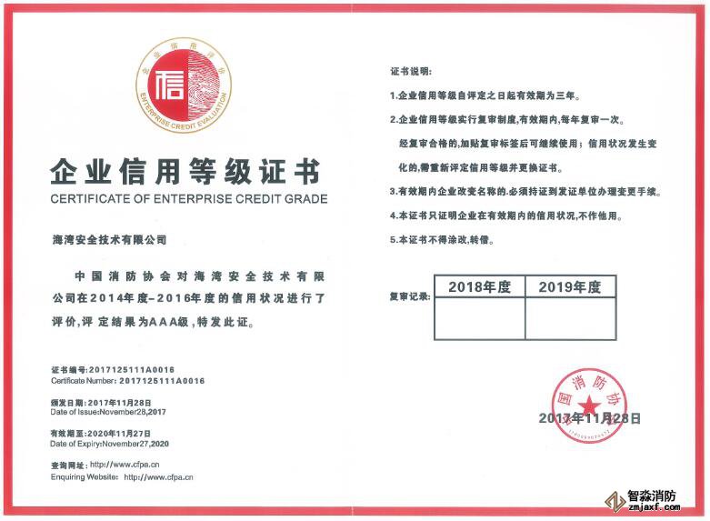 海灣消防公司再次獲評(píng)消防行業(yè)AAA級(jí)信用企業(yè)稱號(hào)