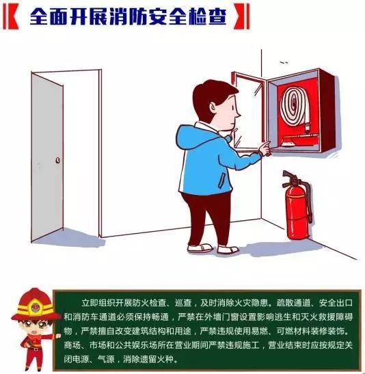 賓館、飯店、商場、市場,這些人員密集場所,一旦發生火災事故極易造成群死群傷的慘劇。作為單位消防負責人,要認真落實消防安全主體責任,狠抓消防安全管理和員工培訓工作,切實提高單位自防自救能力,堅決預防火災事故的發生。