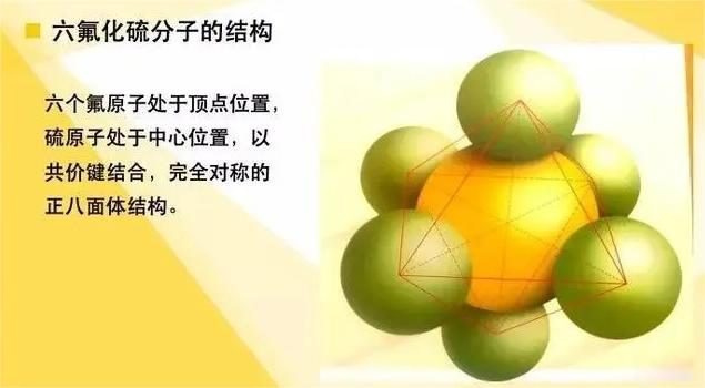 六氟化硫,是一種無機化合物,化學式為SF6,常溫常壓下為無色無臭無毒不燃的穩定氣體,分子量為146.055,在20℃和0.1 MPa時密度為6.0886kg/m3,約為空氣密度的5倍,六氟化硫分子結構呈八面體排布,鍵合距離小、鍵合能高,因此其穩定性很高,在溫度不超過180℃時,它與電氣結構材料的相容性和氮氣相似。