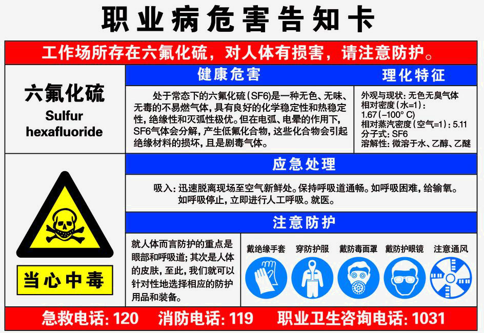 六氟化硫氣體以其高耐電強度及良好的熱穩定性能,被廣泛應用于高壓電氣設備中。六氟化硫氣體的化學性質極為穩定。純凈的六氟化硫氣體是無毒的,但在大電流開斷時,由于強烈的電弧放電會產生一些含硫的低氟化物。這些物質反應能力較強,當有水和氧氣時又會與電極材料、水份進一步反應,從而分解產生有毒或劇毒氣體。這些有毒氣體主要損害人體的呼吸系統,中毒后會出現類似于感冒、皮膚過敏、惡心嘔吐、疲勞等不良反應,吸入劑量大時,會出現更加嚴重的后果。