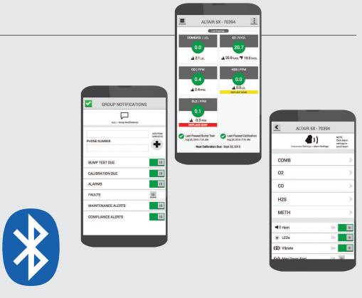 MSA在現(xiàn)有天鷹5X 的基礎(chǔ)上新增了藍(lán)牙無(wú)線功能,實(shí)現(xiàn)了氣體檢測(cè)儀和其他便攜式安卓智能設(shè)備(手機(jī),平板電腦)的無(wú)線互聯(lián)。只需在安卓移動(dòng)設(shè)備上通過(guò)百度助手免費(fèi)下載MSA專(zhuān)屬無(wú)線平臺(tái)——ALTAIR Connect APP,即可實(shí)時(shí)接收氣體檢測(cè)讀數(shù)、更改氣體檢測(cè)儀設(shè)置、接收?qǐng)?bào)警信息。