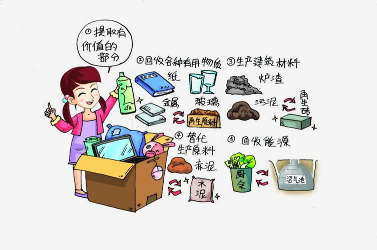 一般來說,固體廢物都有開發利用的價值。就我國來說,工業廢渣、廢礦的年排放量為6億噸,這些固體廢物中含有大量的金屬、稀有金屬和建筑材料,仍可開發利用;廢金屬資源的社會積蓄量達6億噸,每年至少有3500萬噸可以回收利用,價值在220萬元以上;城市有大量的生活垃圾,含有可循環再用的紙類、纖維、金屬和玻璃等,有的固體廢物能焚燒發熱,用來發電和供熱;有機物質含量高的垃圾(如糞便),可以通過發酵,集中回收沼氣,用來發電或供應燃氣。