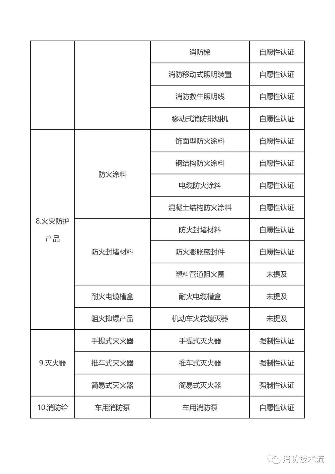 綜合取消強制性認證并開展自愿性認證的消防產品,得出最新仍需要強制性認證及自愿性認證目錄