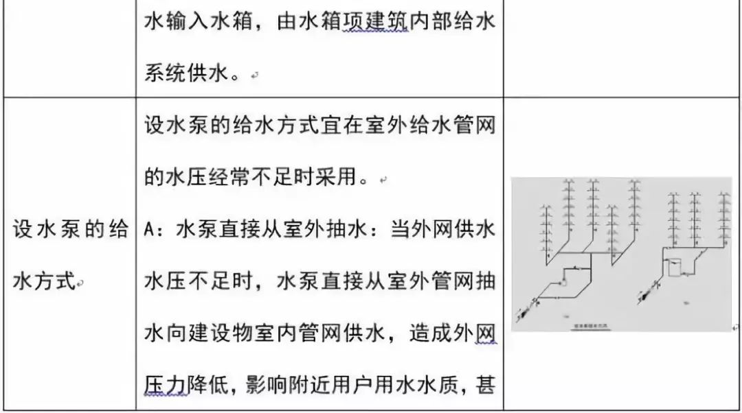 當(dāng)室外給水管網(wǎng)的水壓不足或建筑物內(nèi)部對供水安全性和穩(wěn)定性要求比較高時(shí),需在給水系統(tǒng)中設(shè)置水泵,水箱、氣壓給水設(shè)備和儲(chǔ)水設(shè)備等。
