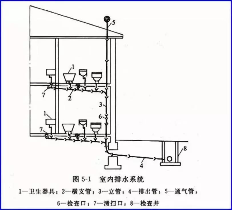 由連接衛(wèi)生器具的排水管道,有一定坡度的橫支管、立管、埋設(shè)在室內(nèi)地下的總橫干管和排出到室外的排出管等組成。