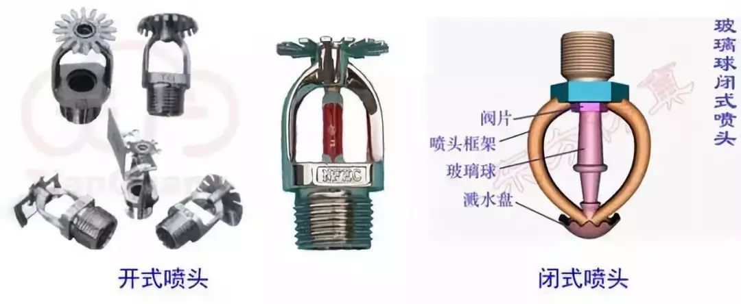 閉式(噴頭噴口由熱敏元件組成,達(dá)到一定溫度后自動(dòng)開啟,如玻璃球爆炸、易熔合金脫離。)