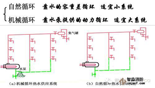 1.按循環管道的設置情況分:有全循環、半循環、非循環熱水供水方式三種: