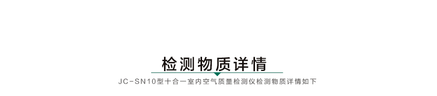 JC-SN10新款微型室內空氣質量檢測儀,是聚創公司的一款新型室內空氣檢測儀,是目前國內較少的一款充電式檢測儀器,其內置大容量鎳氫電池,交、直流兩用供電方式,直流供電可連續工作8小時以上,在檢測室內甲醛、苯、氨、甲苯、二甲苯、TVOC有害氣體的基礎上,還可以檢測溫、濕度等10項參數,是目前國內較少的一款十合一產品。