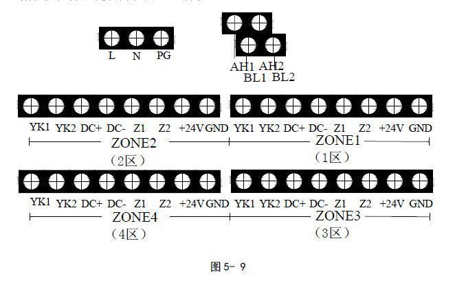3)Z1、Z2:各區的總線輸出端子,連接緊急啟/停按鈕、聲光警報器、氣體釋放警報器、輸出模塊、手自動轉換開關等總線設備。
