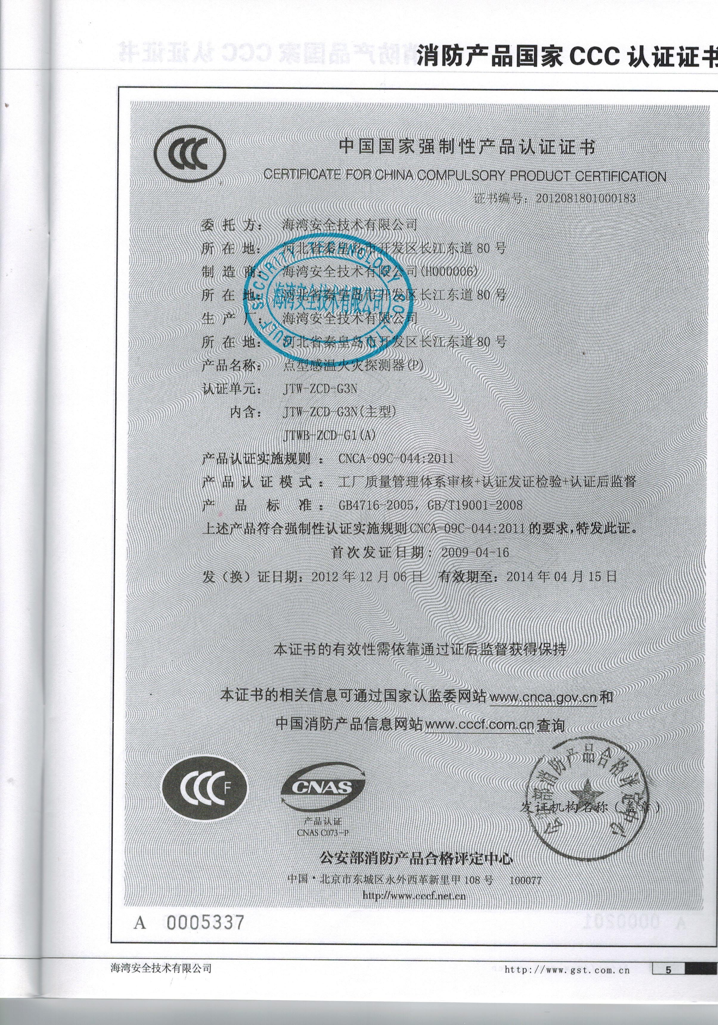 消防聯(lián)動(dòng)控制 系統(tǒng)產(chǎn)品國(guó)家標(biāo)準(zhǔn)GB16806-2006《消防聯(lián)動(dòng)控制系統(tǒng)》于2006年7月17日發(fā)布,2007年4月1日起實(shí)施。國(guó)家認(rèn)證認(rèn)可監(jiān)督管理委員會(huì)于 2007年1月25日發(fā)布了第4號(hào)公告,明確了消防聯(lián)動(dòng)控制系統(tǒng)產(chǎn)品標(biāo)準(zhǔn)換版后強(qiáng)制性認(rèn)證工作的有關(guān)原則和要求。公安部消防產(chǎn)品合格評(píng)定中心根據(jù)標(biāo)準(zhǔn)要 求,修訂了《消防產(chǎn)品類強(qiáng)制性認(rèn)證實(shí)施規(guī)則 火災(zāi)報(bào)警設(shè)備》,明確了包括模塊類產(chǎn)品在內(nèi)的10大類產(chǎn)品進(jìn)行強(qiáng)制性產(chǎn)品認(rèn)證的相關(guān)要求。根據(jù)公消評(píng)[2007]076號(hào)通知要求,各企業(yè)須在2008年 4月1日前,按新的國(guó)家標(biāo)準(zhǔn)中規(guī)定的,取得強(qiáng)制性產(chǎn)品認(rèn)證證書。海灣公司根據(jù)新標(biāo)準(zhǔn)要求,積極開發(fā)符合國(guó)家標(biāo)準(zhǔn)的新產(chǎn)品,較早的提出了模塊類產(chǎn)品的3C認(rèn) 證申請(qǐng)。